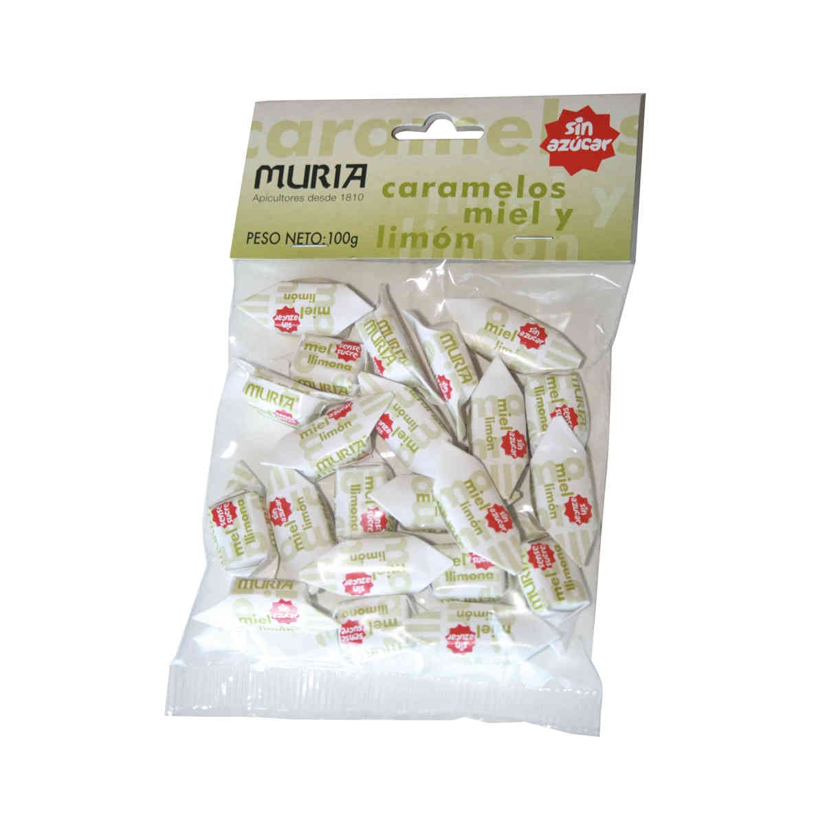 Informació nutricional caramels de mel i llimona sense sucre Muria 100gr: