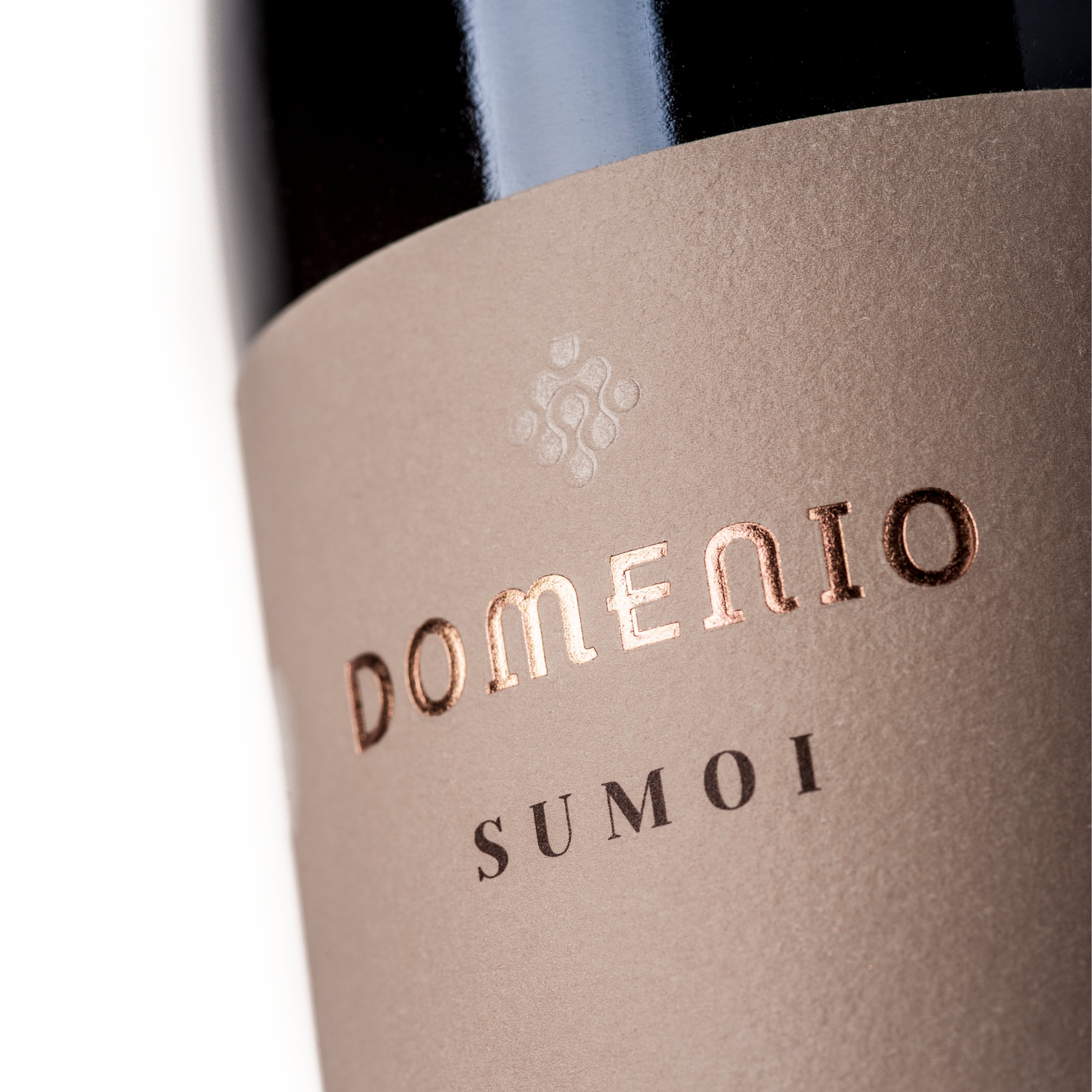Vi negre Sumoi Domenio, elaborat amb la varietat anomenada Sumoia (D.O Catalunya). Vi amb essència gra a gra.