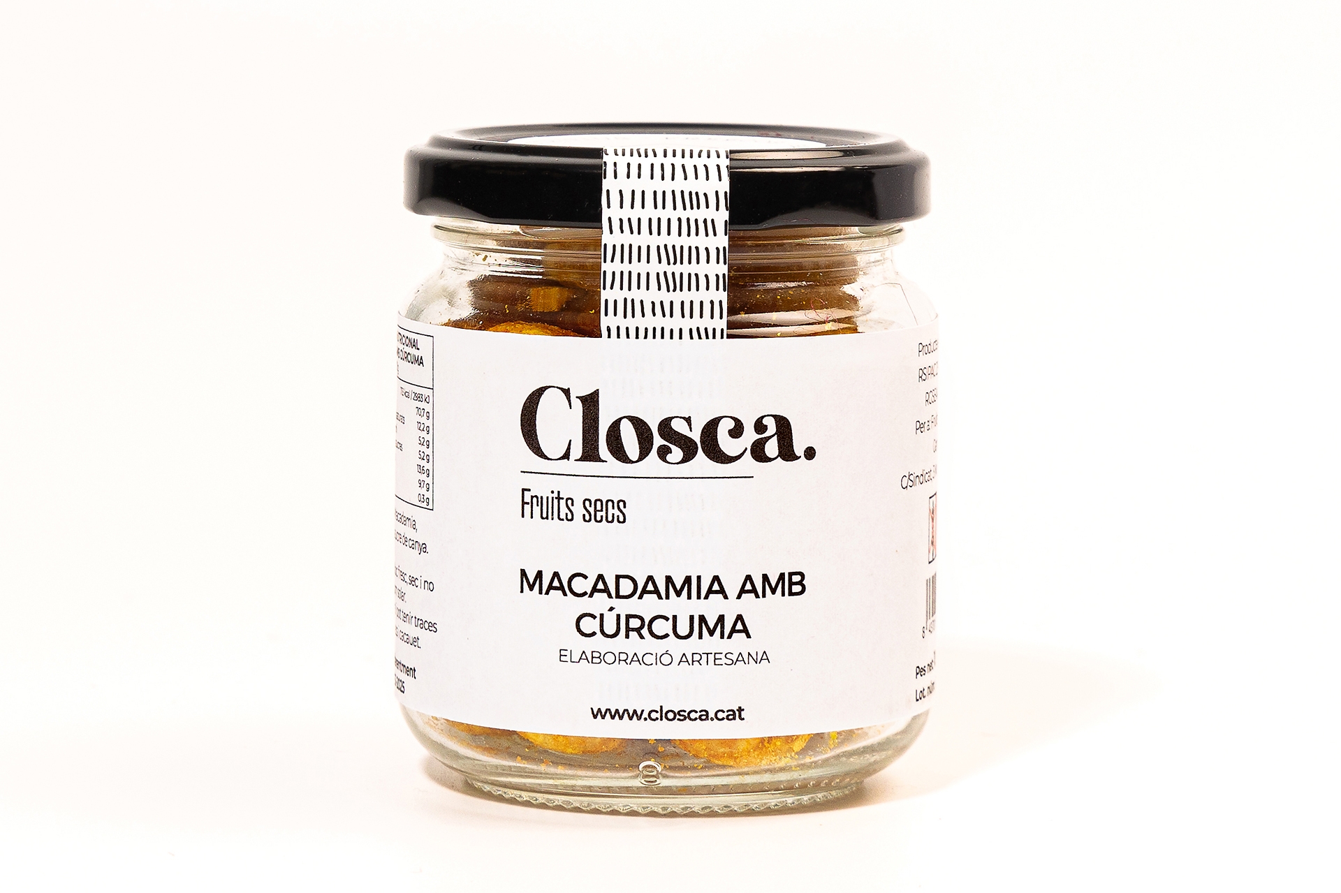 Macadàmia amb cúrcuma Closca producte artesanal fet pels socis de la cooperativa de Segon Grau FSO les Garrigues de manera artesana.