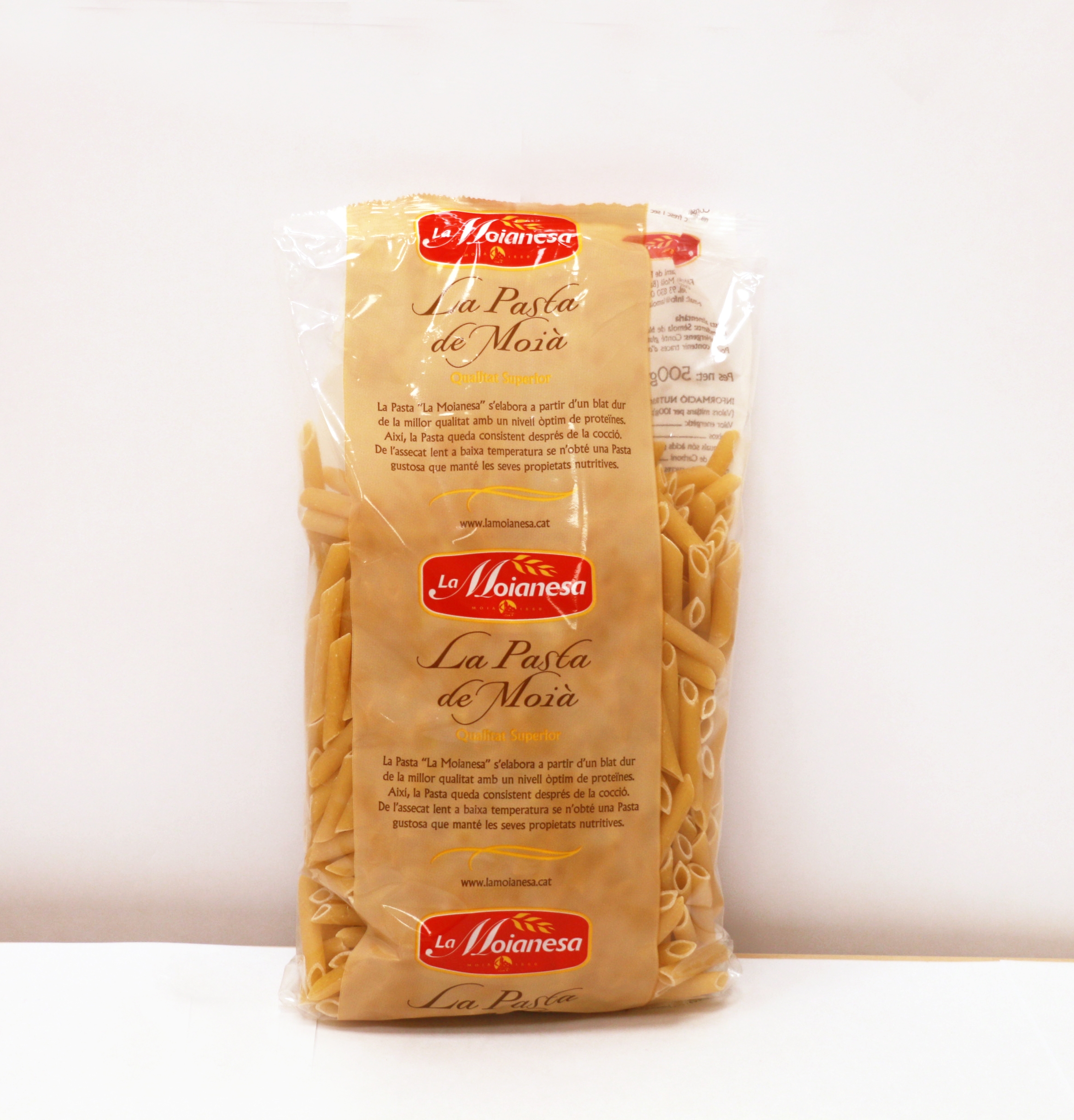 Pasta amb un gust i textura òptims. Assecat lent a baixa temperatura, fabricada a Moià.
