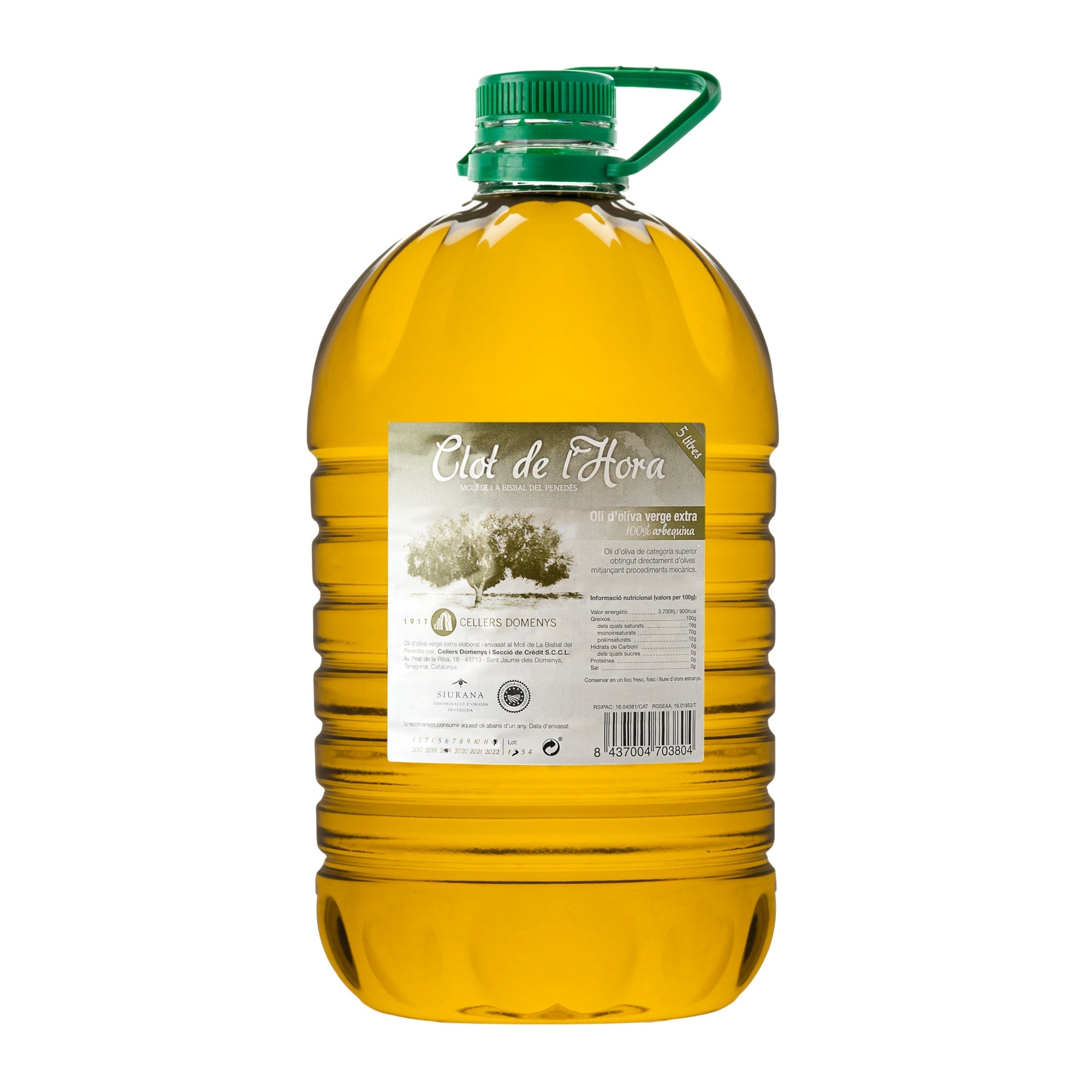 Oli d’oliva Verge Extra Clot de l’hora, destacat per ser elaborat en un molí històric, sense oblidar que és un oli amb denominació d’Origen Siurana.