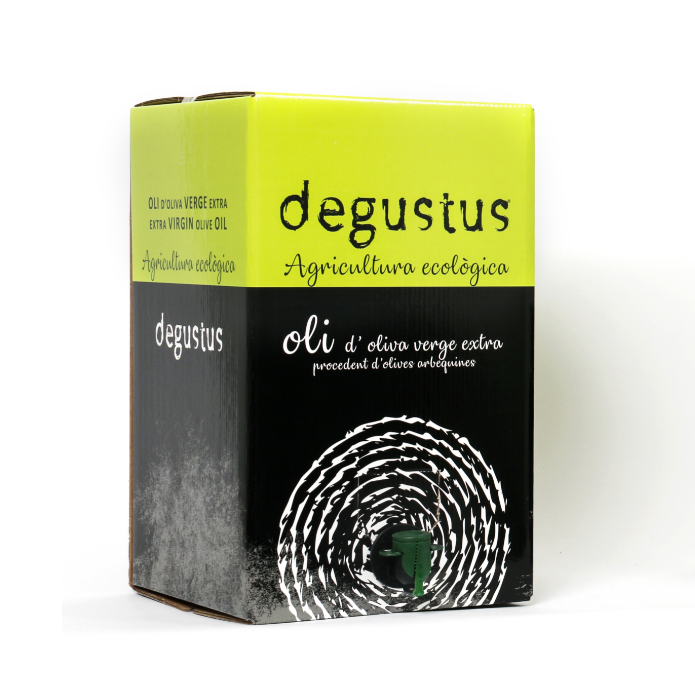 Oli d’oliva Ecològic In Box Degustus destacat per la seva oliva Arbequina 100% ecològica, presenta un sabor fruitat madur.